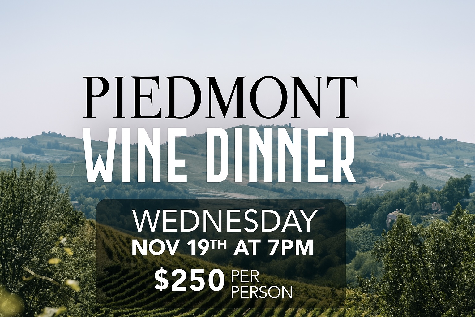 Join us for a multi-course tasting menu paired with exceptional wines from Italy’s Piedmont. Seats are limited.